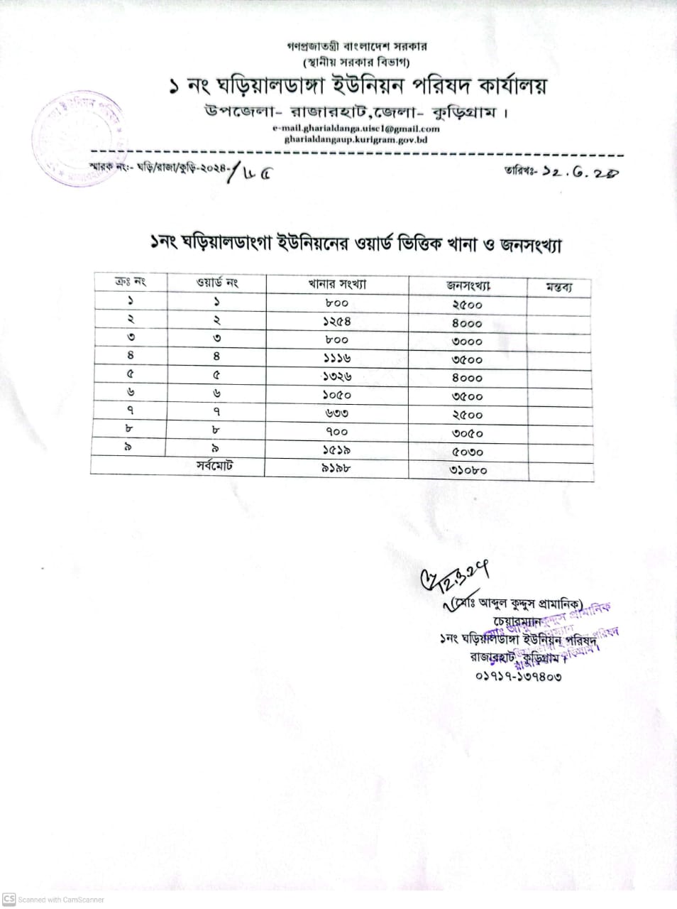 ১নং ঘড়িয়ালডাংগা ইউনিয়নের ওয়ার্ড ভিত্তিক খানা ও জনসংখ্যার তালিকা প্রতিবছরের আপডেট করা হয়।